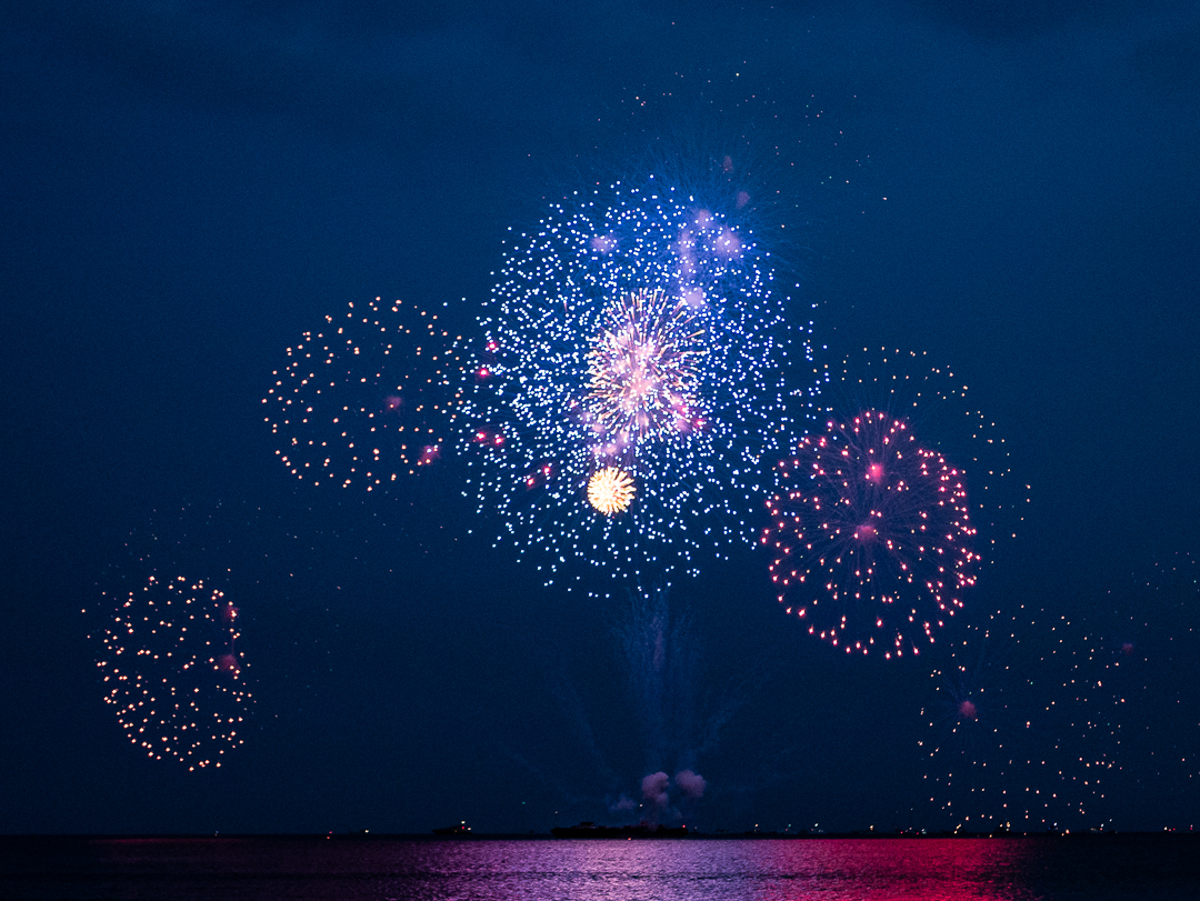 Fyrværkeriet blev fyret af fra en pram ude i vandet, så alle tilskuerne kunne sætte sig til rette inde på stranden. Der var en masse madboder, så man kunne nyde sin aftensmad på stranden indtil solen gik ned omkring kl. 19.20 og showet gik i gang.