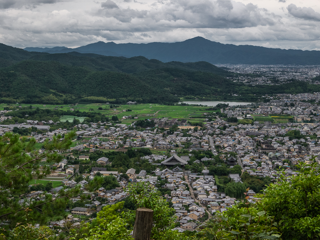 Vi var hurtigt igennem bambusskoven og fandt et spor, som førte op ad bjerget ved siden af skoven. Kort efter vi var begyndt at gå opad, var der en fin åbning, hvor vi havde en flot udsigt over byen.