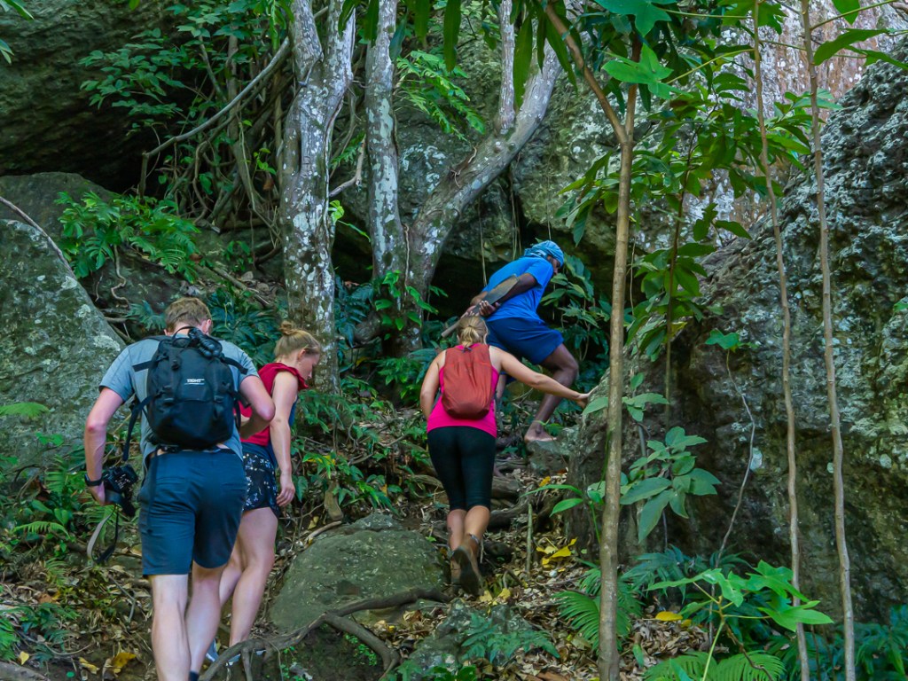 Nathan kendte turen godt. Han fortalte at han var deroppe hver dag, hvilket godt kunne mærkes på hans meget afslappende måde at gå op ad bjerget på. Det eneste han havde med var et stykke stof til at vikle om hovedet – måske for at beskytte mod solen – og så selvfølgelig en machete.