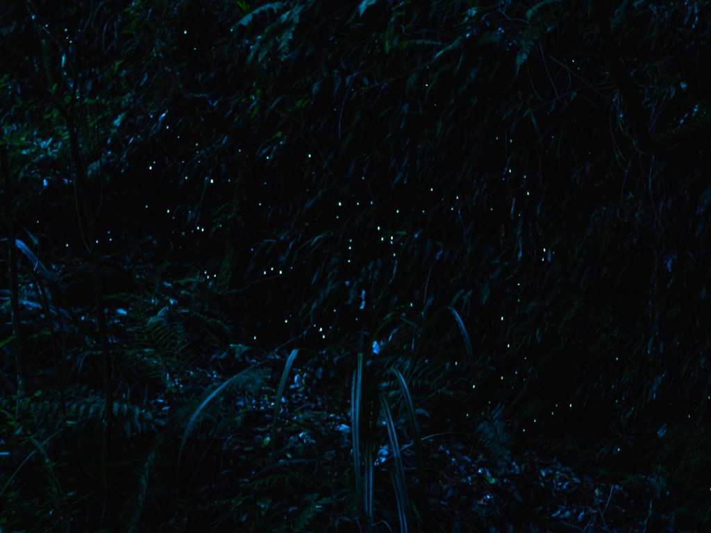 Vi havde læst at det først var efter solnedgang, at man kunne opleve de såkaldte “Glow worms”. Vi gik derfor ned til området lige omkring solnedgang. Først var der ikke ret meget at se, men som det blev mørkere og mørkere begyndte der at pludselig at komme flere og flere små blå lys frem i buskadset. Det lignede lidt en masse små stjerner, som blev tændt i skoven omkring os.