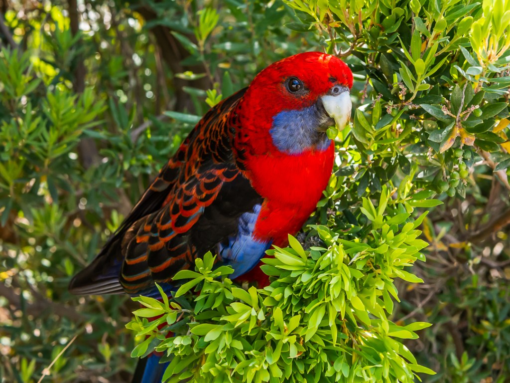 Da vi kom tilbage til Melbourne og fik tømt kameraet og kigget på billederne, så vi, at jeg havde været så tæt på fuglen, som kaldes Rosella, at det er muligt at se mig reflekteret i fuglens øje.