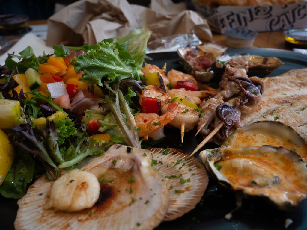 I en storby som Sydney finder man selvfølgelig også flere forskellige markeder rundt omkring. Vi havde læst meget godt om Sydney fiskemarked, som skulle være et af de større fiskemarkeder i verden. Fiskemarkedet består af flere lagerhuse hvor fiskene handles og distribueres til industrien og private. Der er også et stort område hvor der er mange små boder og cafeer, hvor man kan købe fisk med hjem, eller man kan få serveret en lækker fiskeret ved en af bordene. Vi valgte at spise frokost ved en af caféerne en af dagene og som man kan se på billedet, var det virkelig lækkert.