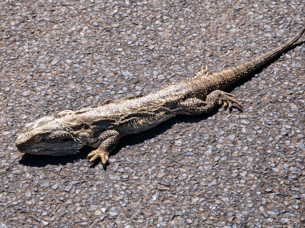 Der er flere ting man skal være opmærksom på, når man kører rundt i Australien. En del steder er der skiltning om, at man skal passe på krydsende kænguer, koaler og andre nuttede dyr. Vi har endnu ikke være udsat for, at skulle undvige en af de nævnte dyr, men jeg måtte dog undvige en ca. halv meter lang øgle.