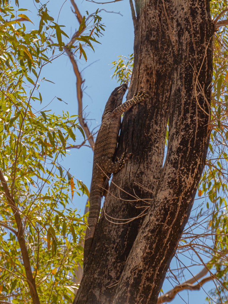 Det første stykke gik nemt, da vi kunne gå i skygge af træerne og der var rimelig fladt. Vi kunne derfor nemt gå og nyde naturen og der gik heller ikke lang tid før vi så den første store øgle kravle op ad et træ og selvfølgelig kænguruer hoppe rundt omkring os.