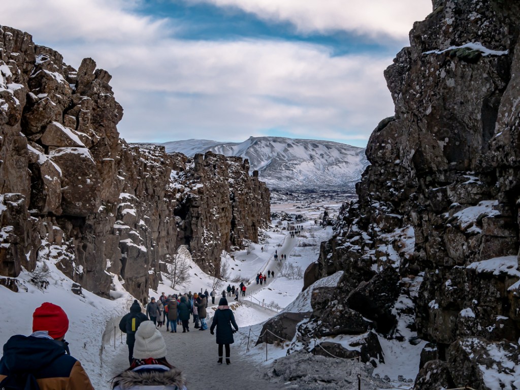 Når de tektoniske plader driver væk fra hinanden, skaber dette en kløft-dal mellem de to plader, som på Island er ca. 5 km bred. De to plader driver i gennemsnit ca. 7 mm væk fra hinanden hvert år, mens dalen imellem dem bliver 1 mm lavere. De fleste steder på jorden sker dette under havets overflade, mens man på Island kan opleve det på land.