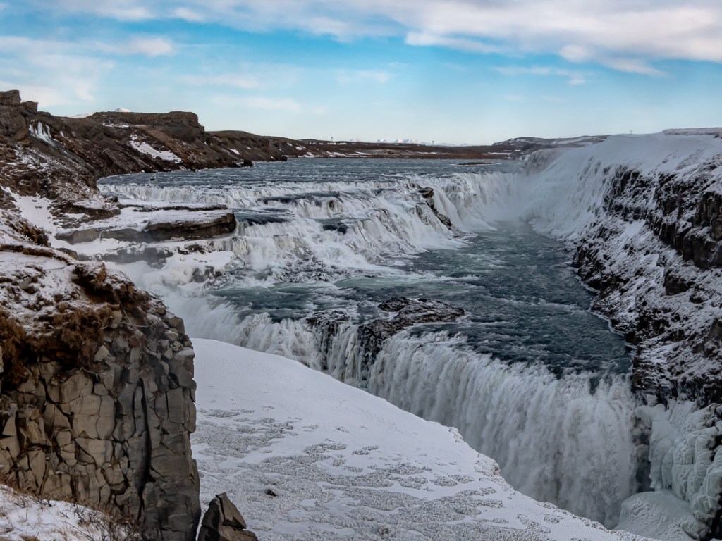 Efter at have gået lidt rundt ved Thingvellir, fortsatte turen videre til vandfaldet Gullfoss, som skulle være et af landets mest populære vandfald.